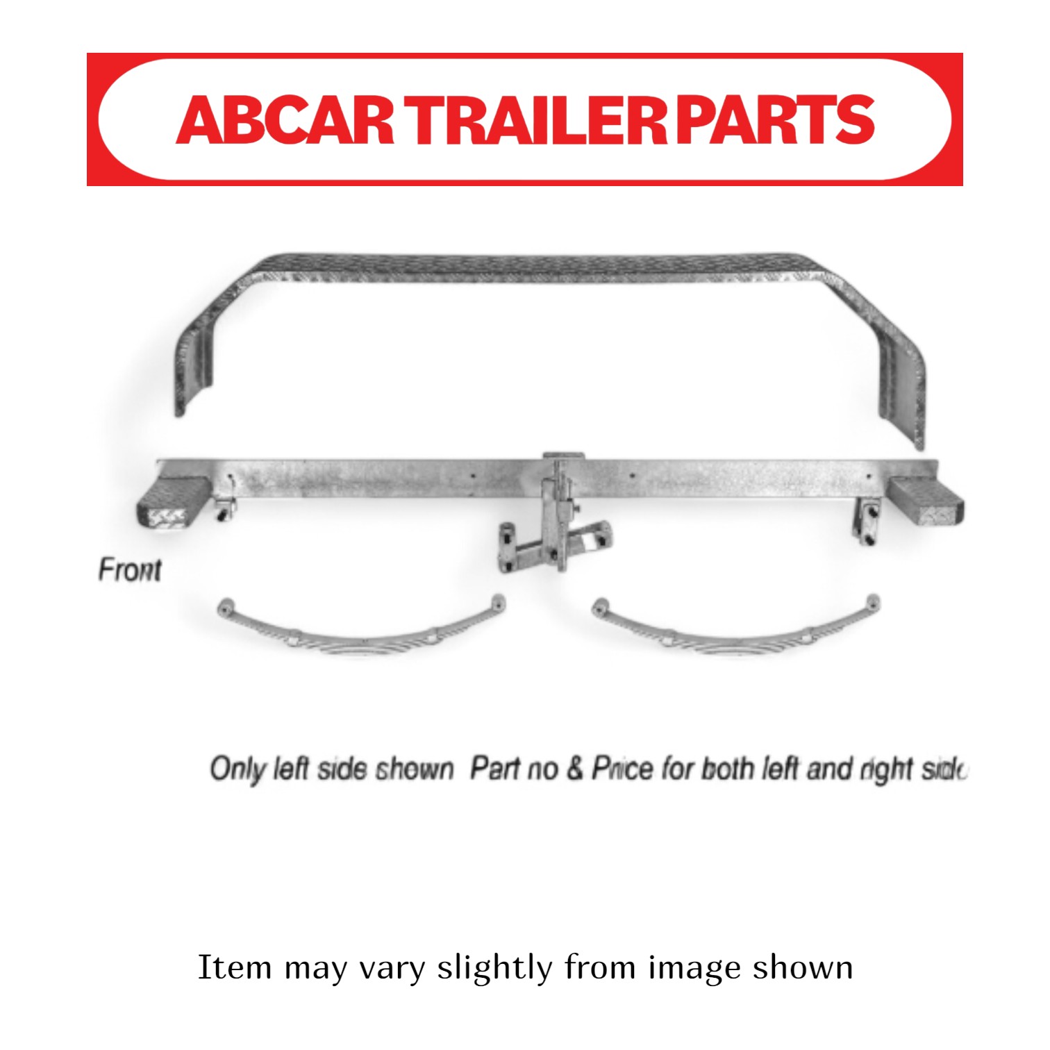 Kit includes: One pair (1 left hand & 1 right hand) to complete one boat trailer. Includes aluminium mudguards, 4 leaf 45mm dacromet galvanised eye eye springs and hardware.